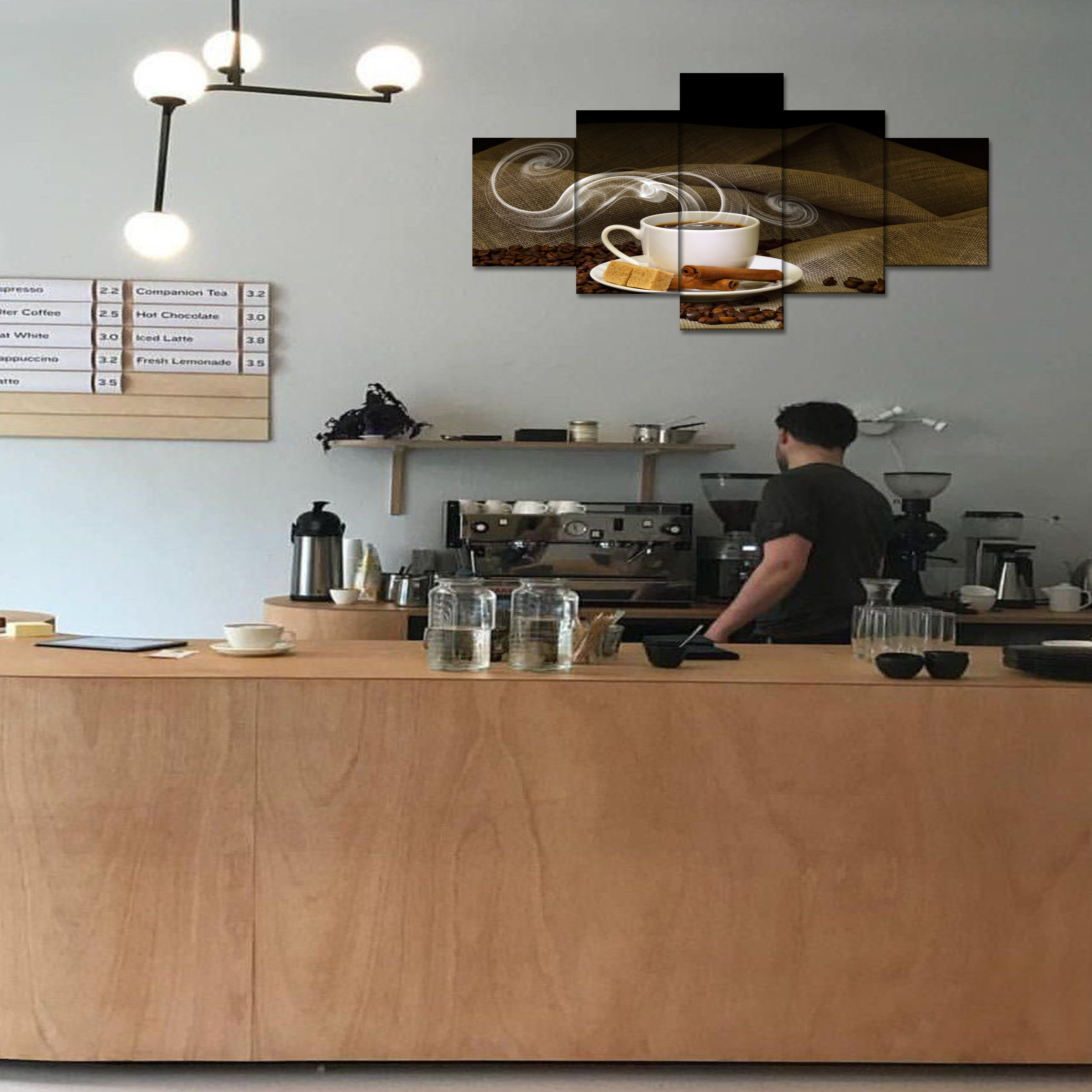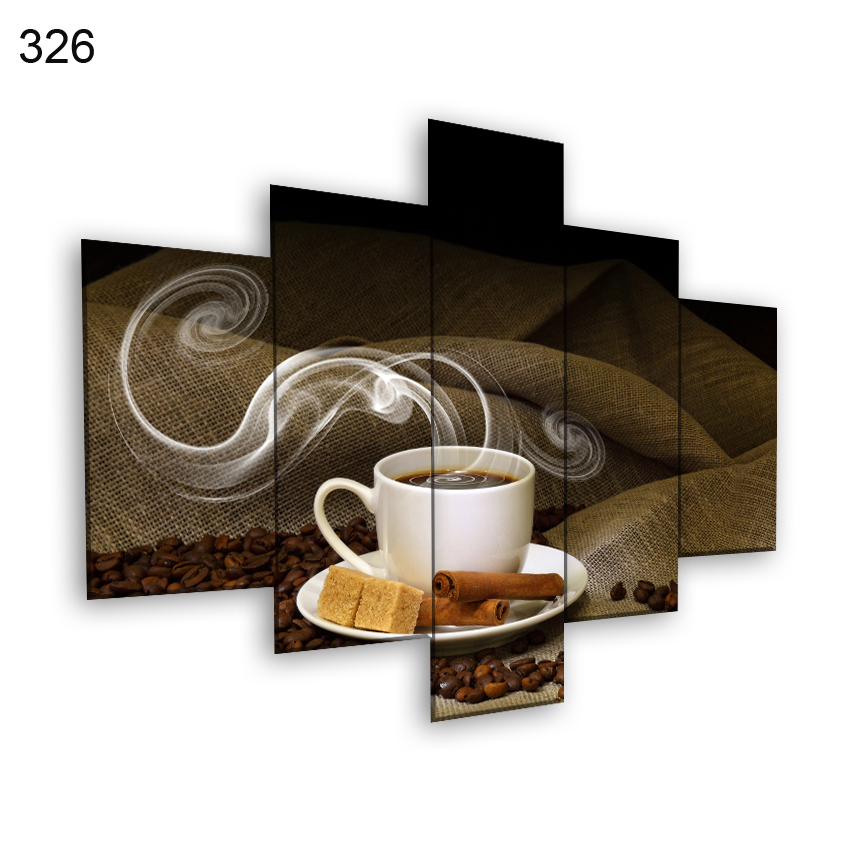لوحة من خمس اطارات مطبوعة بتقنية الطباعة الحديثة على القماش المطاطي(Bach brion)